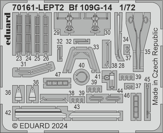 Eduard - Messerschmitt Bf 109G-14 1/72 The ProfiPACK edition kit of German fighter aircraft Messerschmitt Bf 109G-14 in 1/72 scale. The kit is focused on aircraft used in Luftwaffe, Aeronautica Nazionale Repubblicana (italian National Republican Air Force) and Zrakoplovstvo Nezavisne Drzave Hrvatske (Air Force of the Independent State of Croatia).plastic parts: Eduard- marking options: 6- decals: Eduard- Pe parts: yes, pre-painted- painting mask: yes- resin parts: no