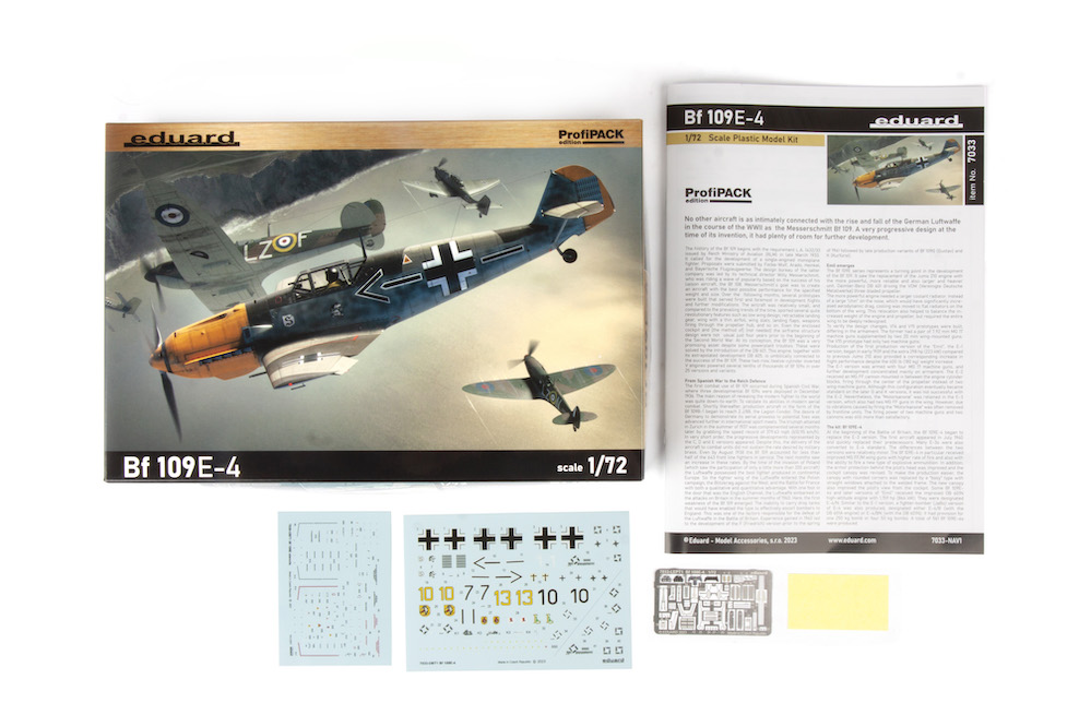 Eduard - Messerschmitt Bf-109E-4 1/72 kits) ProfiPACK edition kit of German WWII fighter plane Messerschmitt Bf-109E-4 in 1/72 scale. plastic parts: Special Hobby marking options: 6 decals: Eduard Pe parts: yes, pre-painted painting mask: yes resin parts: no