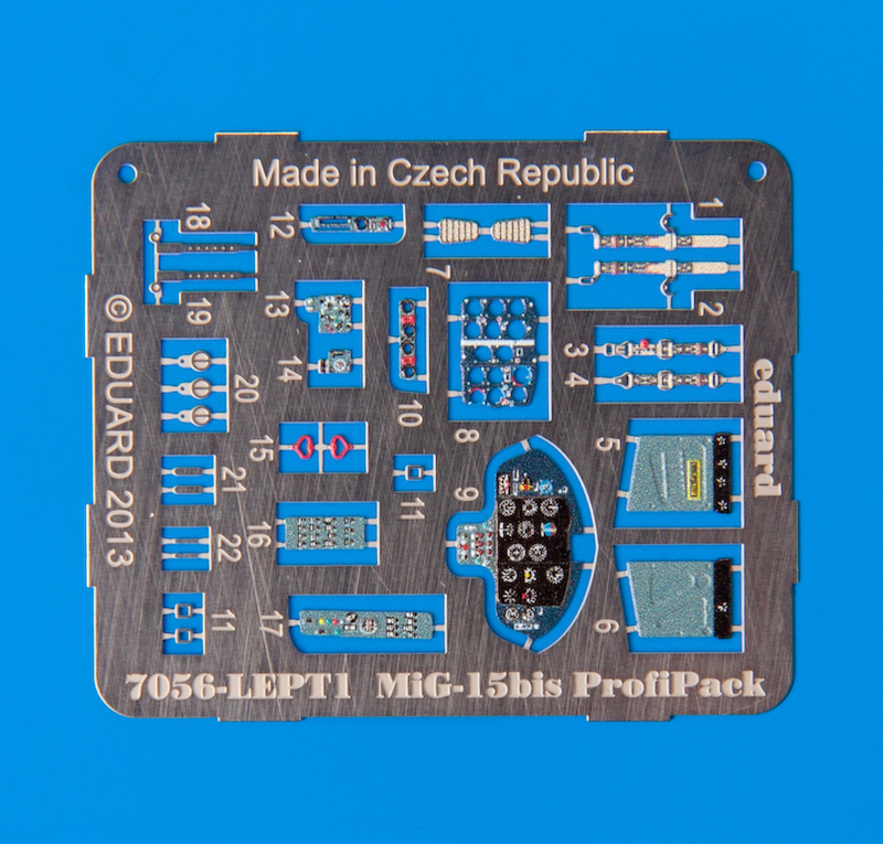 Eduard - Mikoyan MiG-15bis ProfiPACK edition kit of Soviet Cold War jet aircraft Mikoyan MiG--15bis in 1/72 scale. plastic parts: Eduard marking options: 5 decals: Eduard Pe parts: yes, pre-painted, painting mask: yes, resin parts: no