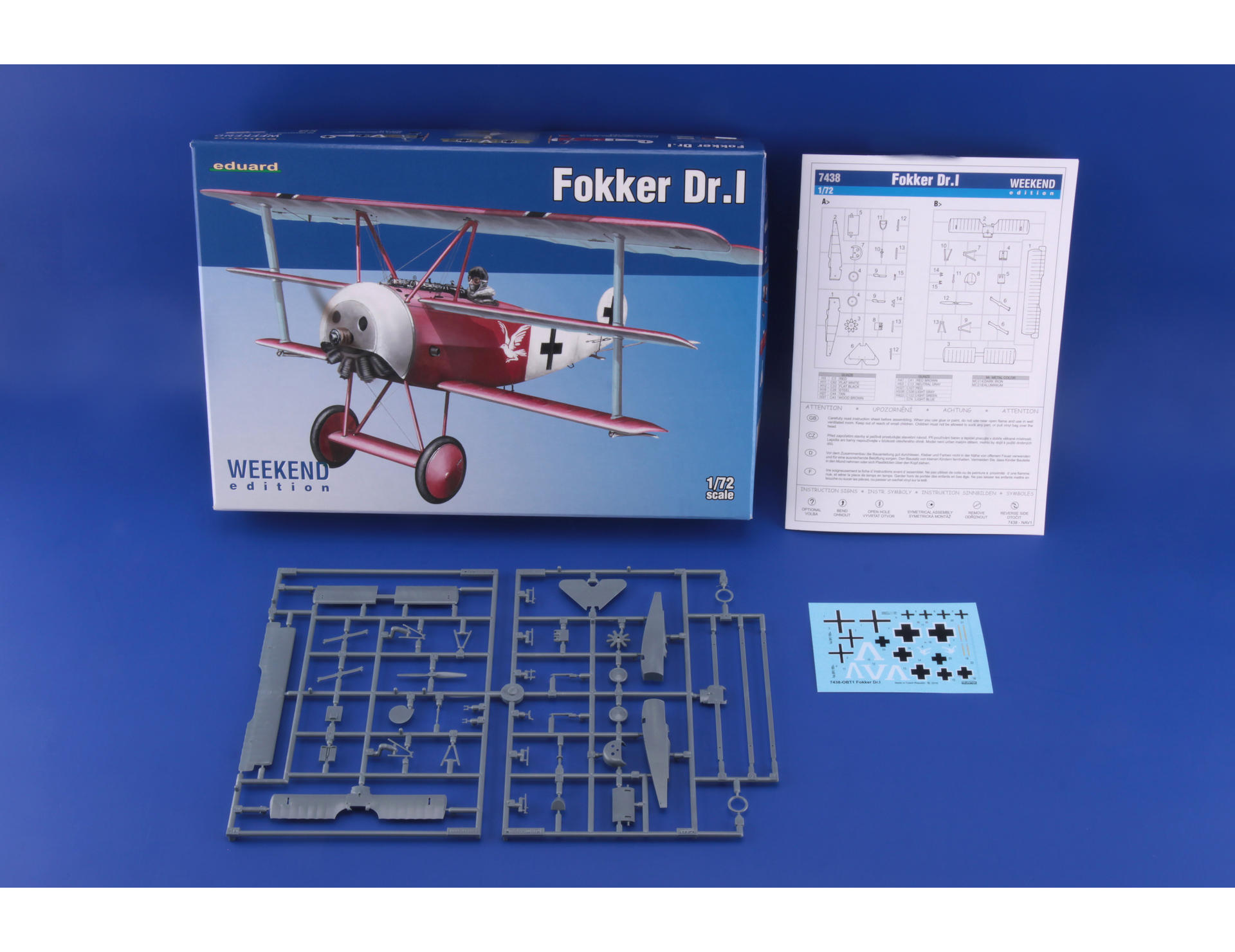 Eduard - 1/72 Fokker Dr.I Triplane Eduard plastic, decals printed by Eduard, 2 marking options. NO PE, NO mask, NO resin included, full color instructions.