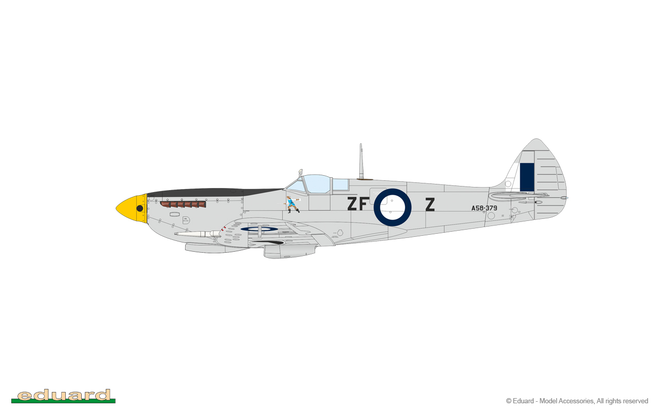 Eduard - 1/72 Supermarine Spitfire Mk.VIII (first delivered 01-06-2022) Weekend edition kit of British WWII fighter aircraft Spitfre F Mk.IX in 1/72 scale. plastic parts: Eduard No. of decal options: 4 decals: Eduard Pe parts: no painting mask: no resin parts: no