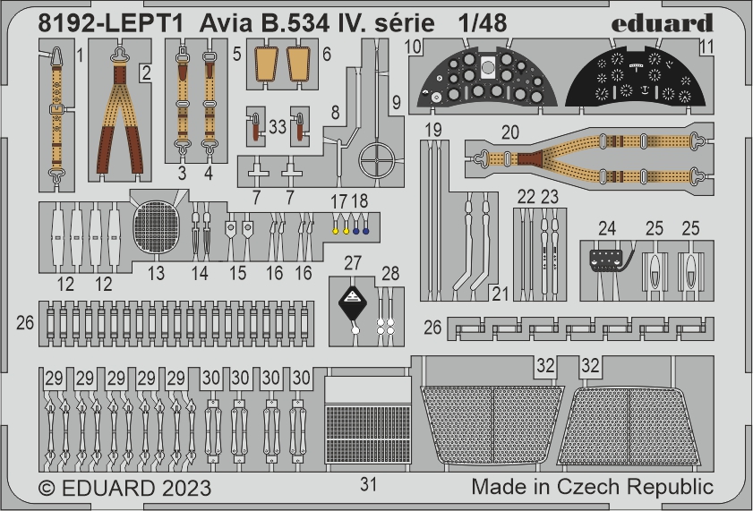 Eduard - 1/48 Avia B-534 IV serie kits) ProfiPACK edition kit of Czechoslovak fighter aircraft Avia B.534 IV. serie in 1/48 scale. plastic parts: Eduard- marking options: 4- decals: Eduard- Pe parts: yes, pre-painted- painting mask: yes- resin parts: no