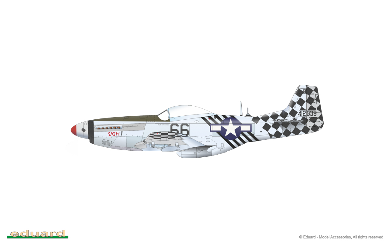 Eduard - 1/48 North-American P-51K Mustang ProfiPACK edition kit of US WWII famous fighter aircraft P-51K Mustang in 1/48 scale. plastic parts: Eduard marking options: 6 decals: Eduard Pe parts: yes, pre-painted painting mask: yes resin parts: no