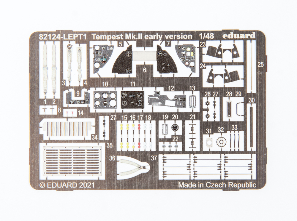 Eduard - 1/48 Hawker Tempest Mk.II early version ProfiPACK edition kit of British fighter aircraft Tempest Mk.II in 1/48 scale. Focused on machine from the Royal Air Force. plastic parts: Eduard marking options: 6 decals: Eduard Pe parts: yes, pre-painted painting mask: yes resin parts