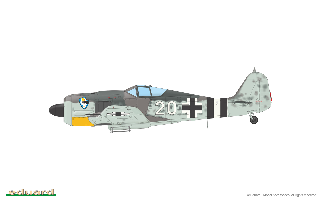 Eduard - 1/48 Focke-Wulf Fw-190A-7 First edition of this kit. The ProfiPACK edition kit of German WWII fighter aircraft Fw 190A-7 in 1/48 scale. Kit presents Focke-Wulfs from the Jg 1, Jg 11, Jg 54, Jg 300, F ¼hrerj gerstaffel and Sturmstaffel 1. Plastic parts: Eduard, marking options: 6, decals: Eduard, Pe parts: yes, pre-painted, Painting mask: yes