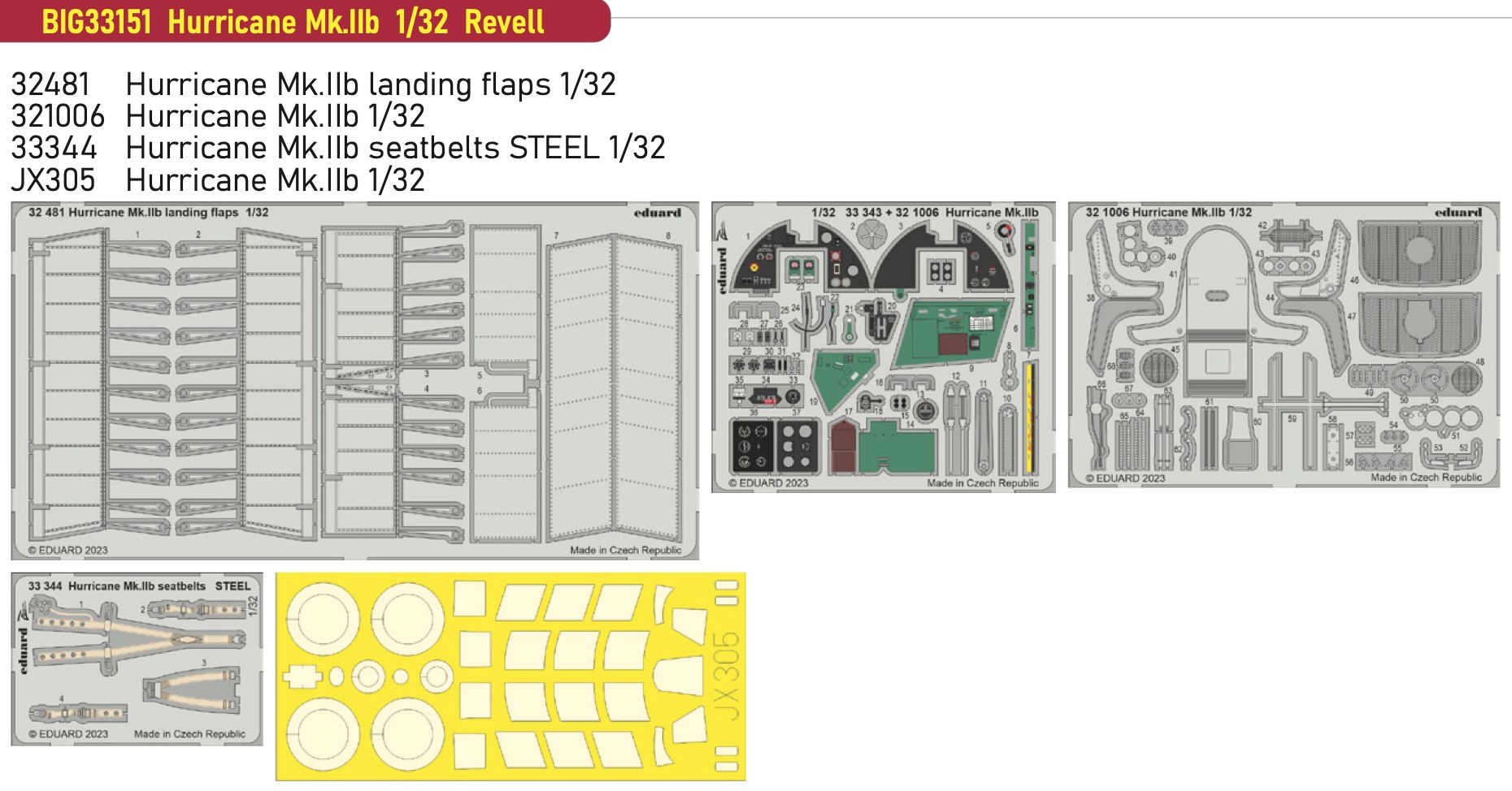 Eduard - Hawker Hurricane Mk.IIb 1/32 (for Revell kits) This BiG-Ed set includes all these Eduard sets:
