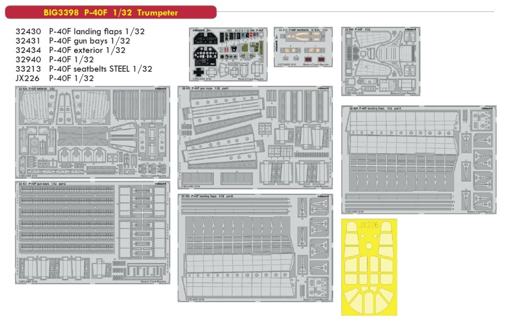 Eduard - 1/32 Curtiss P-40F Warhawk (for Trumpeter Kits) This Big-Ed sets contained all these Eduard sets!
