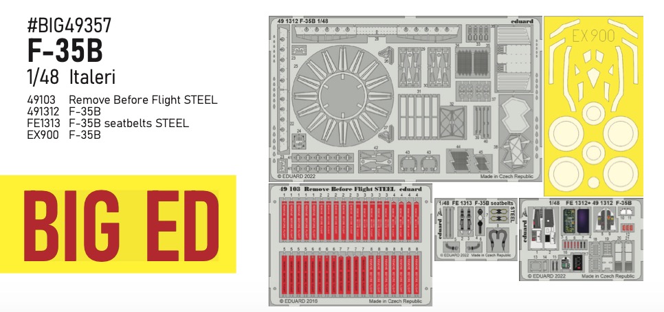 Eduard - 1/48 Lockheed-Martin F-35B Lightning II (for Italeri kits) This BiG-Ed set includes all these Eduard sets:
