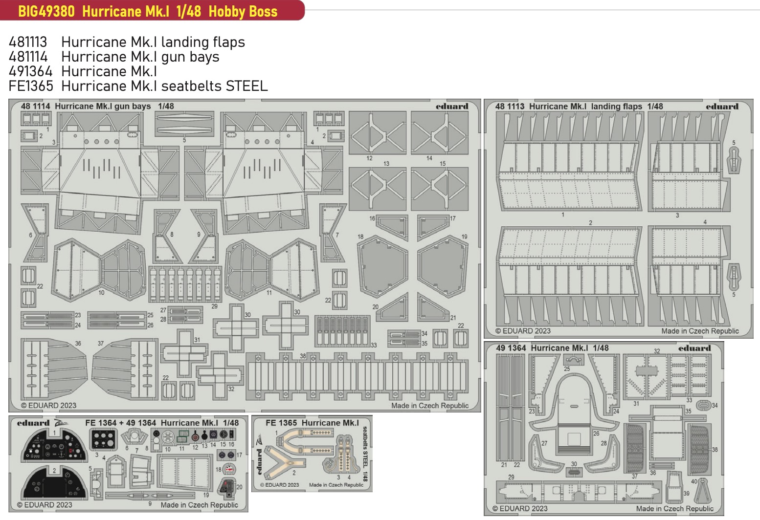 Eduard - Hawker Hurricane Mk.I 1/48 (for Hobby Boss kits) This BiG-Ed set includes all these Eduard sets:
