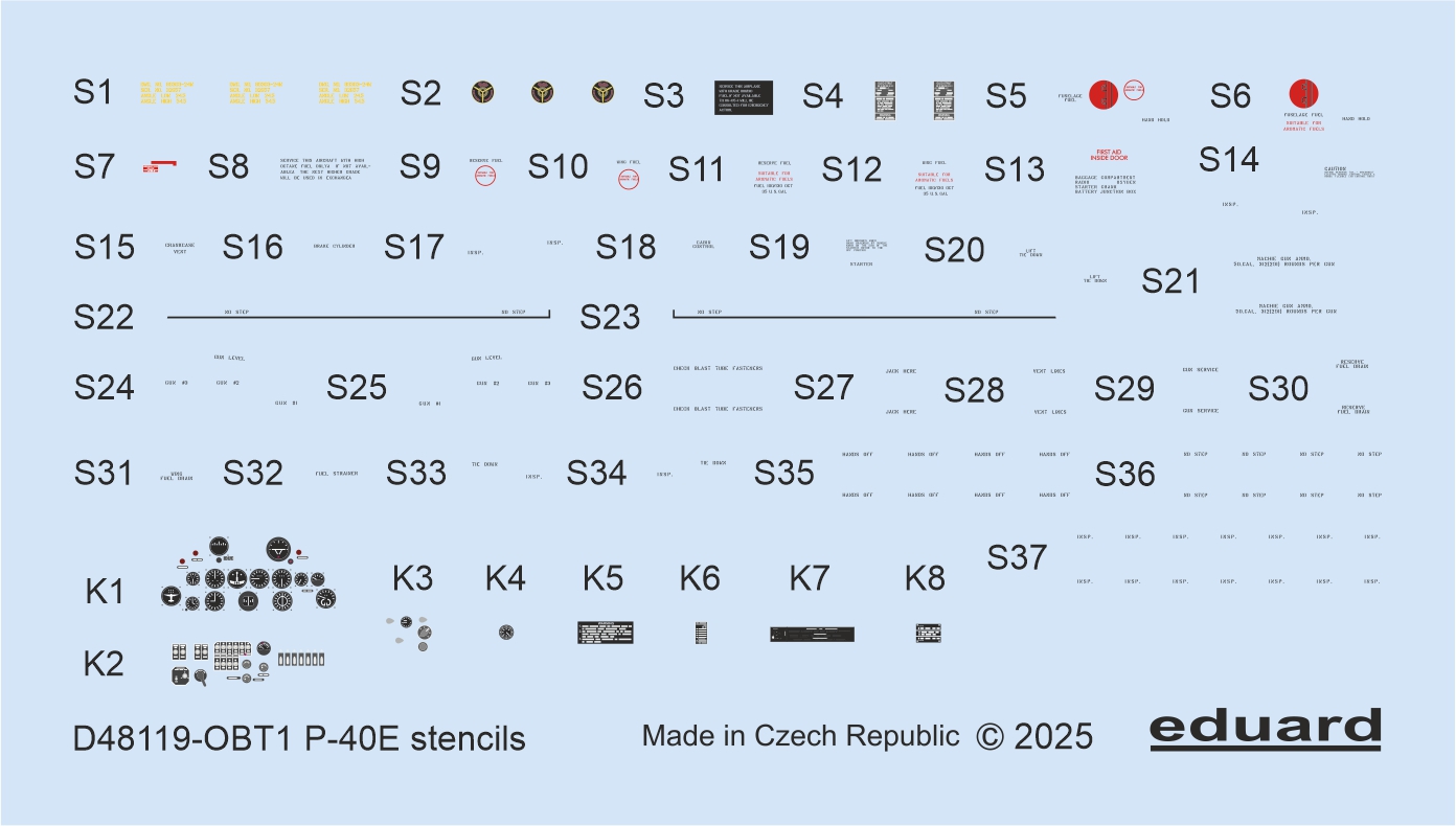 EDUARD - 1/48 Decals P-40E stencils for Eduard