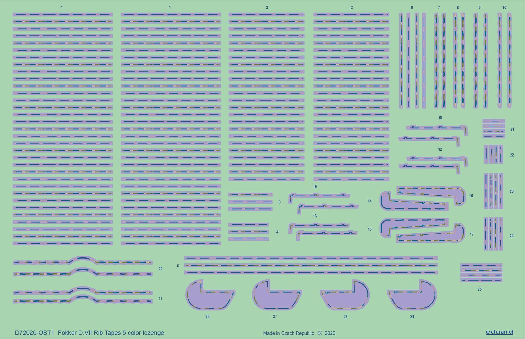 Decals 1/72 Fokker D.VII rib tapes 5-color lozenge