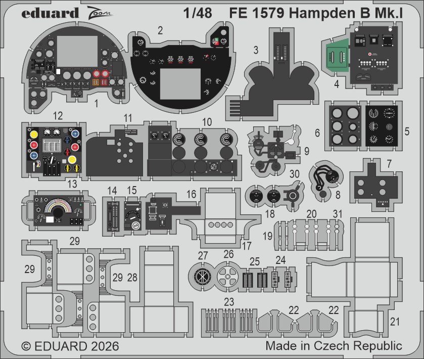 Eduard Detailset im Maßstab 1/48 für den ICM-Bausatz des Bombers Handley Page Hampden B Mk.I.