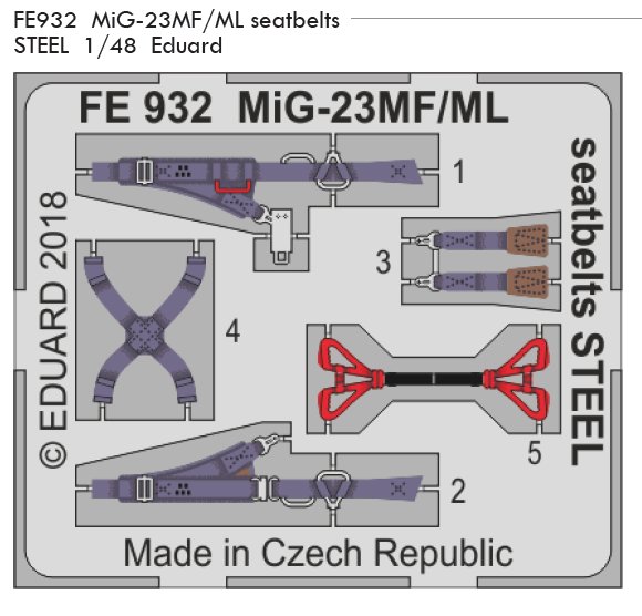 EDUARD - 1/48 MiG-23MF/ML seatbelts STEEL (EDU/TRUMP) colour photoetched ZOOM