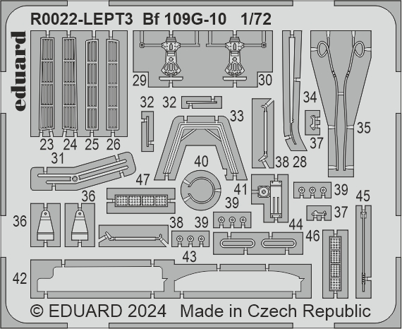 Eduard - 1/72 Messerschmitt Bf-109G-10 & Bf-109G-14/AS Dual COMBO. The Royal Class edition kit of the German fighter aircraft Bf 109G-10 in 1/72 scale. The box contains plastic sprues for two complete kits. plastic parts: Eduard, marking: 10, decals, Pe parts, painting mask, resin parts: (exhausts, undercarriage wheels-two types), wheel wells plugs (Omask)