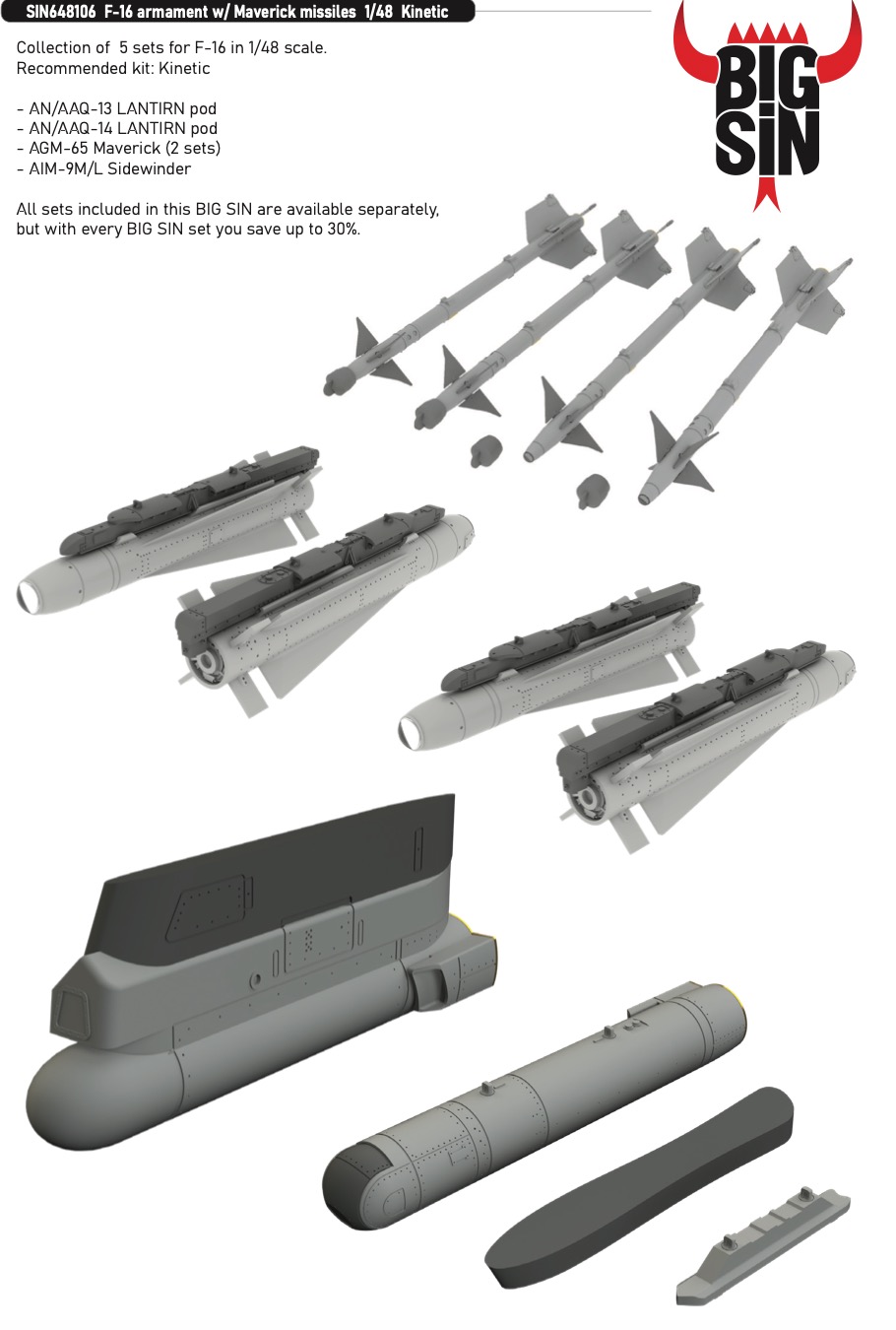 BIGSIN 1/48 F-16 armament with Maverick missiles