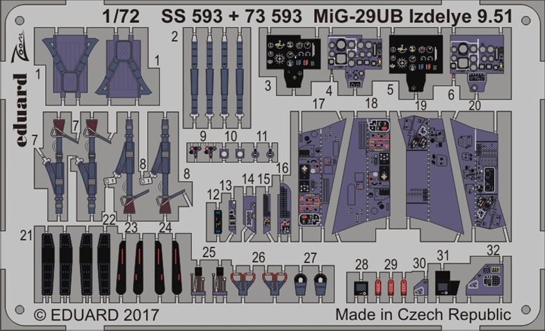 Eduard - 1/72 Mikoyan MiG-29UB Izdelye 9.51 (for Trumpeter kits) 'Zoom' sets are simplified versions of the larger sets and include about 20 of the more important and prominent parts for detailing the aircraft