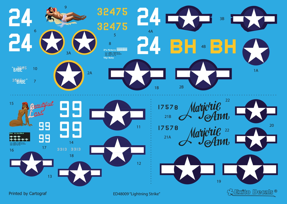 Exito Decals - 1/48 Lockheed P-38F/G Lightning 'Lightning Strike'