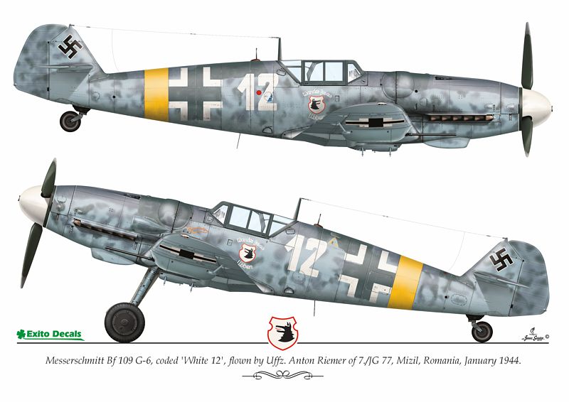 Exito Decals - 1/72 Messerschmitt Bf-109G-6, White 12 , flown by Uffz. Anton Riemer of 7./JG 77, Mizil, Romania, January 1944.