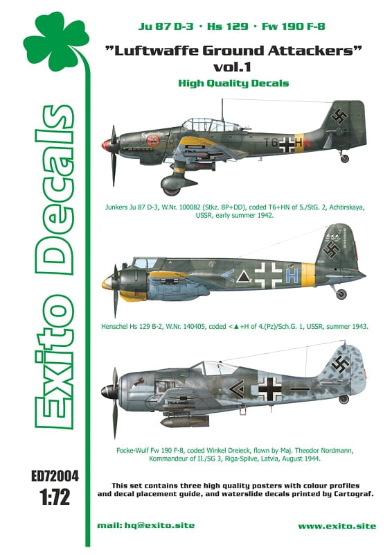Exito Decals - 1/72 Luftwaffe Ground Attackers vol.1 Junkers Ju-87D-3 'Stuka', Henschel Hs-129, Focke-Wulf Fw-190F-8