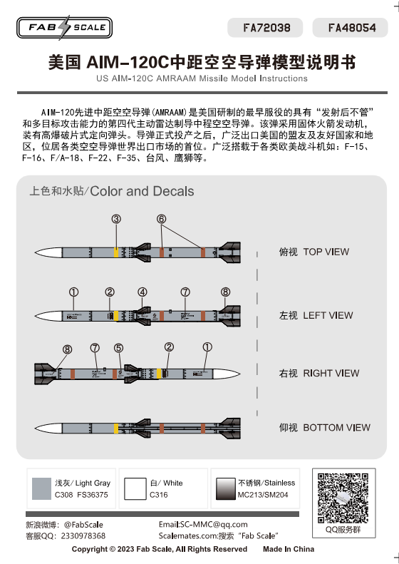 FabScale Studio - 1/72 US AIM-120C Amraam 4 pieces