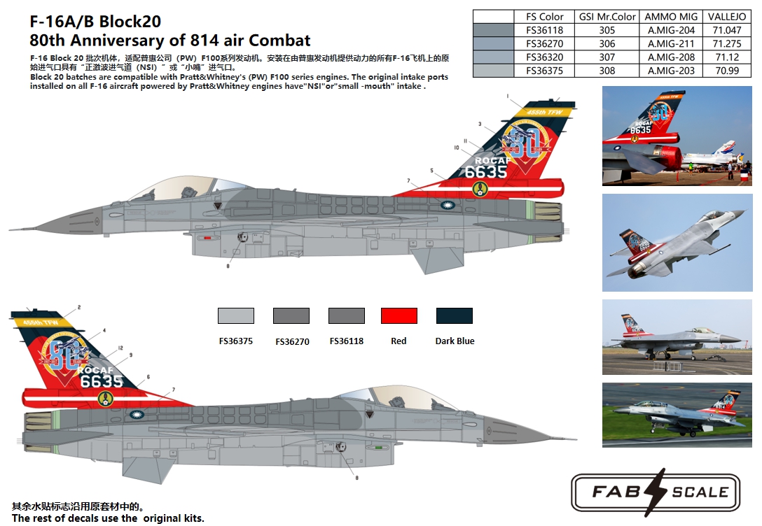 FabScale Studio - 1/48 General-Dynamics F-16A/F-16B Block 20 80th Anniversary of 814 air Combat