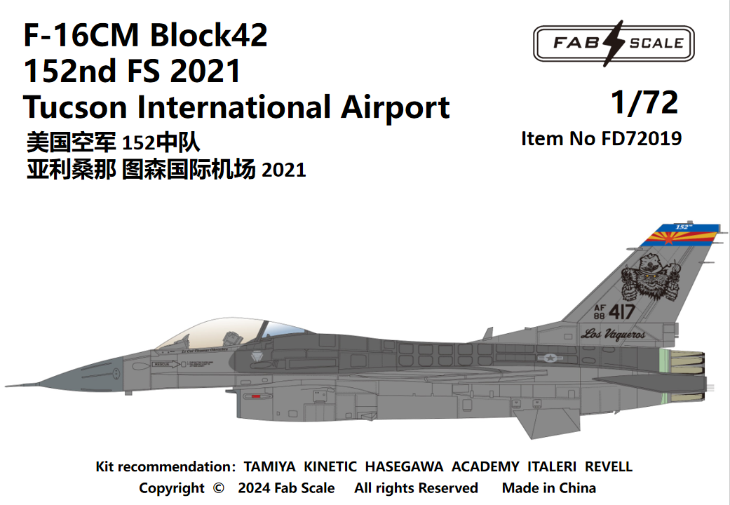 FabScale Studio - 1/72 USAF Lockheed-Martin F-16CM Fighting Falcon Block 42 152nd Fs Tucson International Airport 2021
