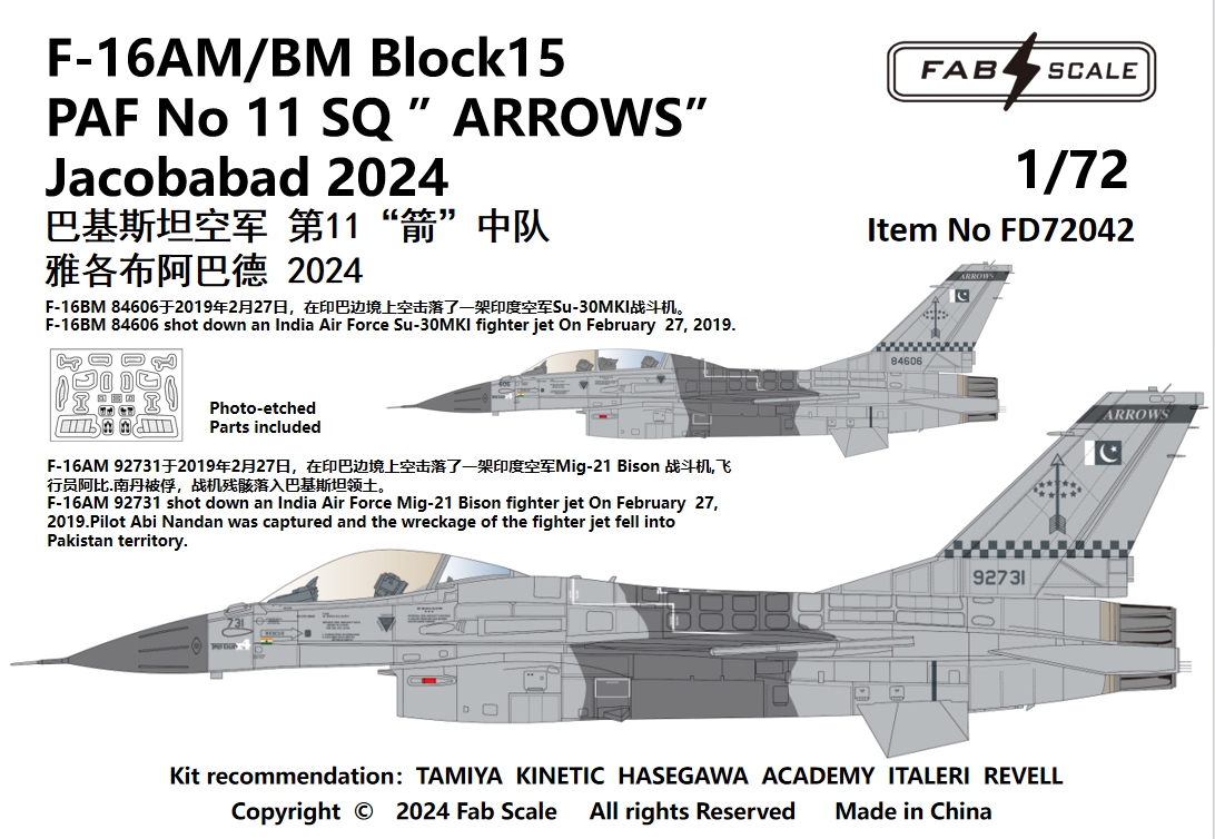 FabScale Studio - 1/72 General-Dynamics F-16AM/F-16BM Block 15 Paf No 11 Sq 'ARROWS' Jacobabad 2024 MiG/Sukhoi Killer