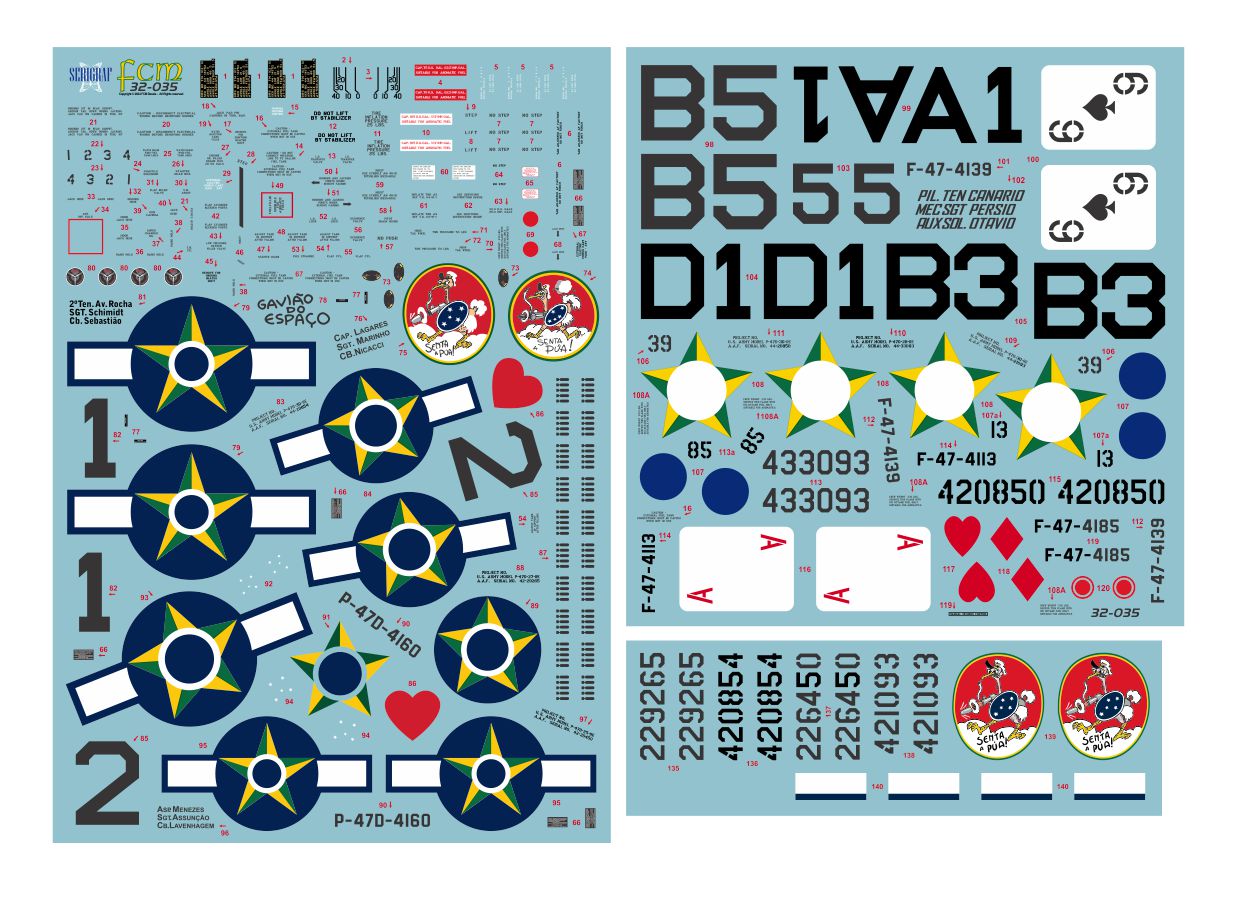 1/32 P-47D Thunderbolt Brazil 6 versions WW2 and 4 post war set