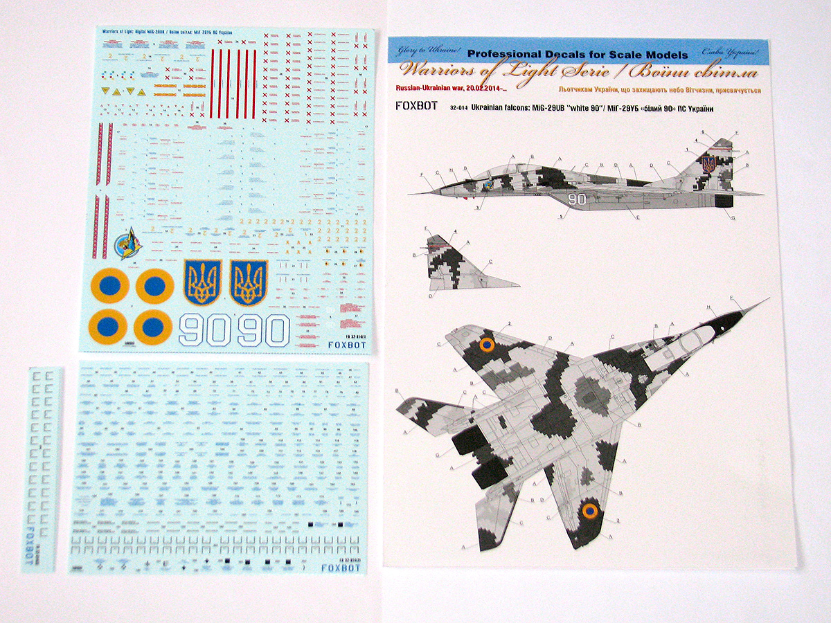 Foxbot Decals - 1/32 Mikoyan MiG-29UB, Ukranian Air Forces, digital camouflage (decals with masks) Trumpeter, Revell kits