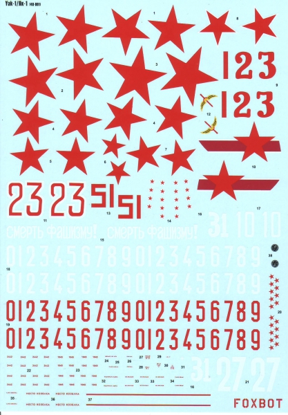 Foxbot Decals - 1/48 Yakovlev Yak-1, early prod., for Modelsvit kit