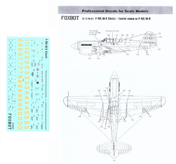 Foxbot Decals - 1/48 Curtiss P-40E/P-40M/P-40K Stencils