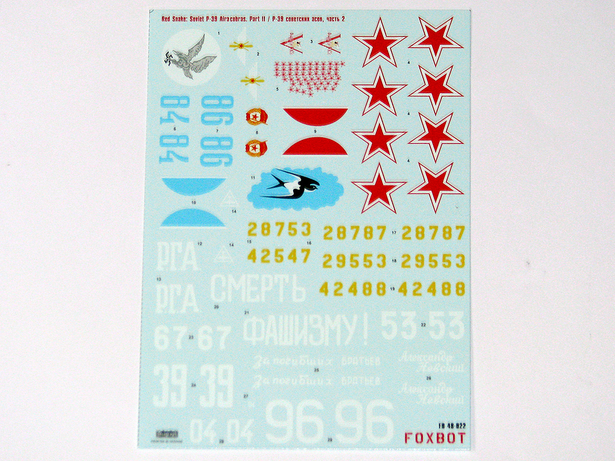 Foxbot Decals - 1/48 Red Snake: Soviet Bell P-39 Airacobras and Stencils, Part 2 (for Accurate Miniatures, Eduard, Hasegawa, Monogram, Revell kits)