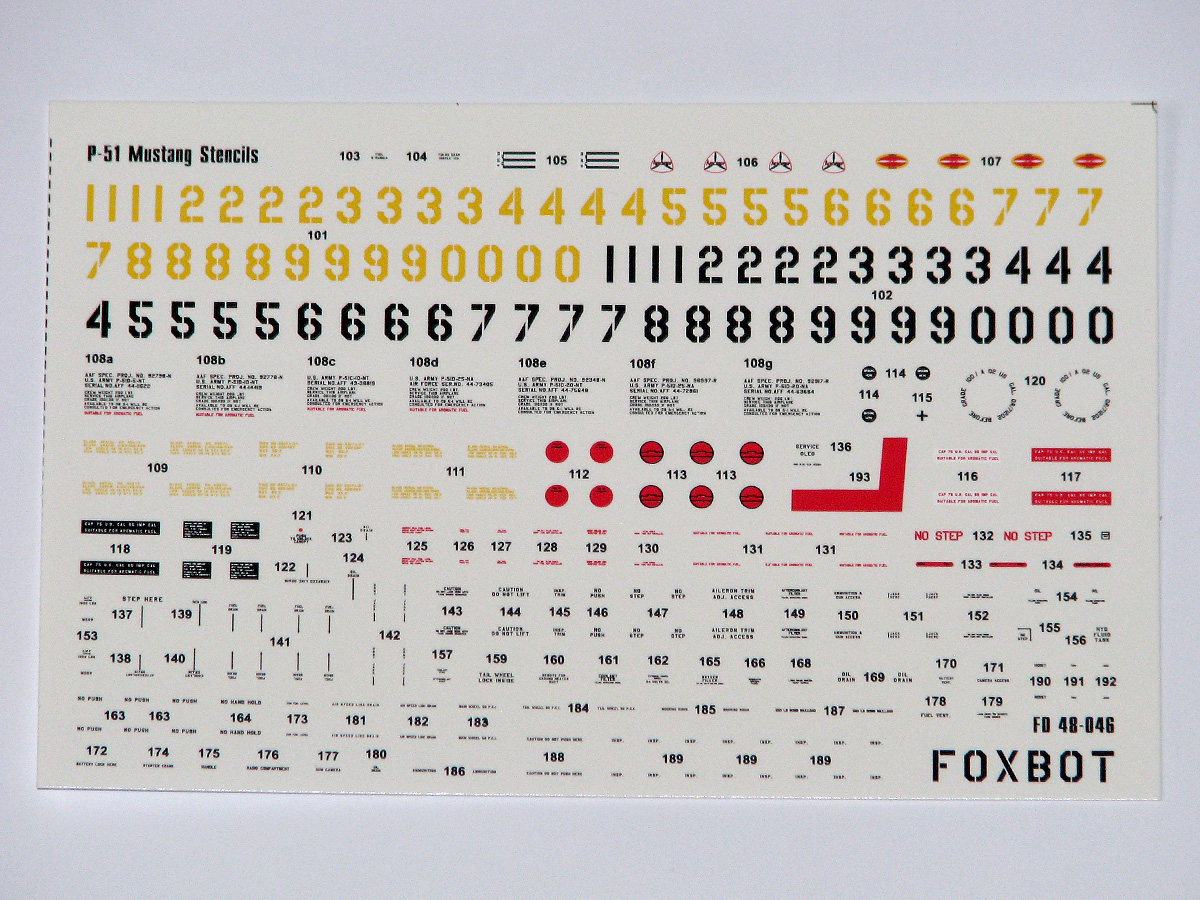 Foxbot Decals - 1/48 Stencils for North American P-51D Mustang (for , Accurate Miniatures, Airfix, Eduard, Fujimi, Hasegawa, ICM, Italeri, Meng, Monogram, Revell, Tamiya, Testors kits)