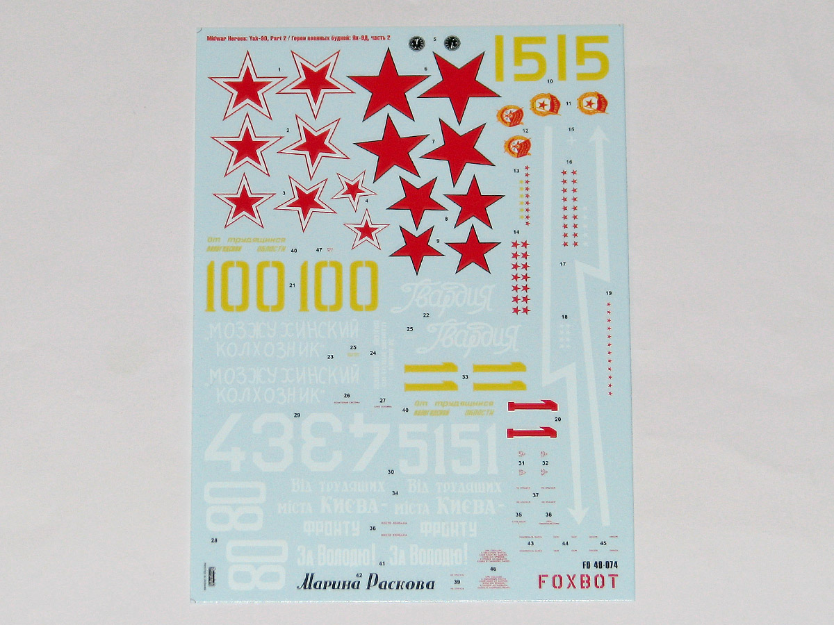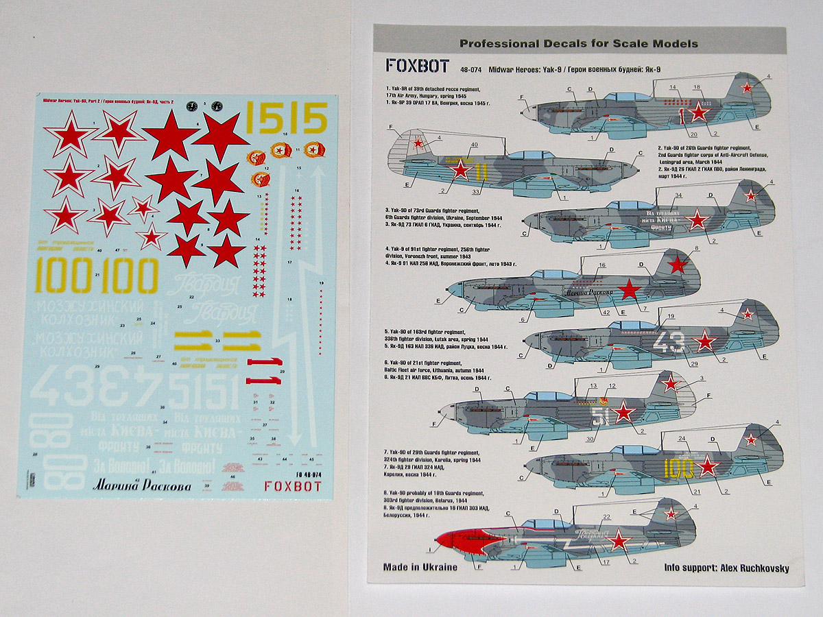 Foxbot Decals - 1/48 Soviet interceptor and fighter aircraft Yakovlov Yak-9 Midwar Heroes, Part 2