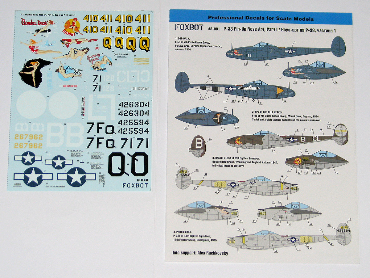 Foxbot Decals - 1/48 Lockheed P-38 Lightning Pin-Up Nose Art, Part 1 (Stencils not included)