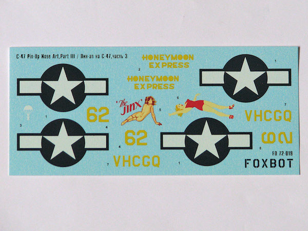 Foxbot Decals - 1/72 Pin-Up Nose Art Douglas C-47 and Stencils, Part 3 (for Airfix, Italeri, ESCI, Revell kits)