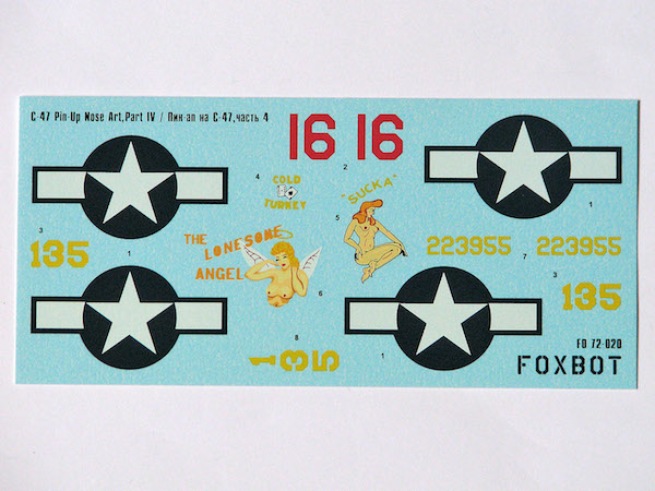 Foxbot Decals - 1/72 Pin-Up Nose Art Douglas C-47 and Stencils, Part 4 (for Airfix, Italeri, ESCI, Revell kits)