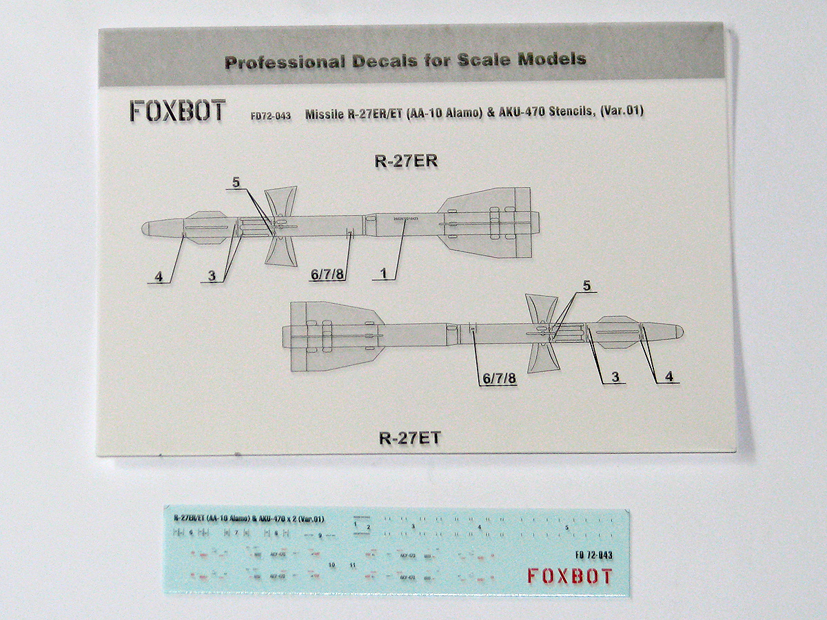 Foxbot Decals - 1/72 Soviet Missile R-27ER/ET (AA-10 Alamo) & AKU-470 Stencils (Var.1)