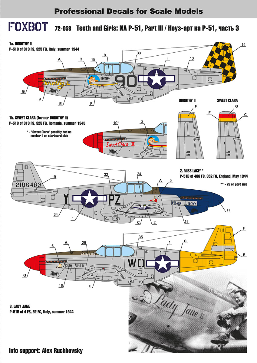 Foxbot Decals - 1/72 North-American P-51 Mustang Nose art, Part 3 (for Academy, Az model, Airfix, Brengun, Hasegawa, Heller, HobbyBoss, Revell, Italeri, KP, Monogram, Special Hobby and Tamiya kits)