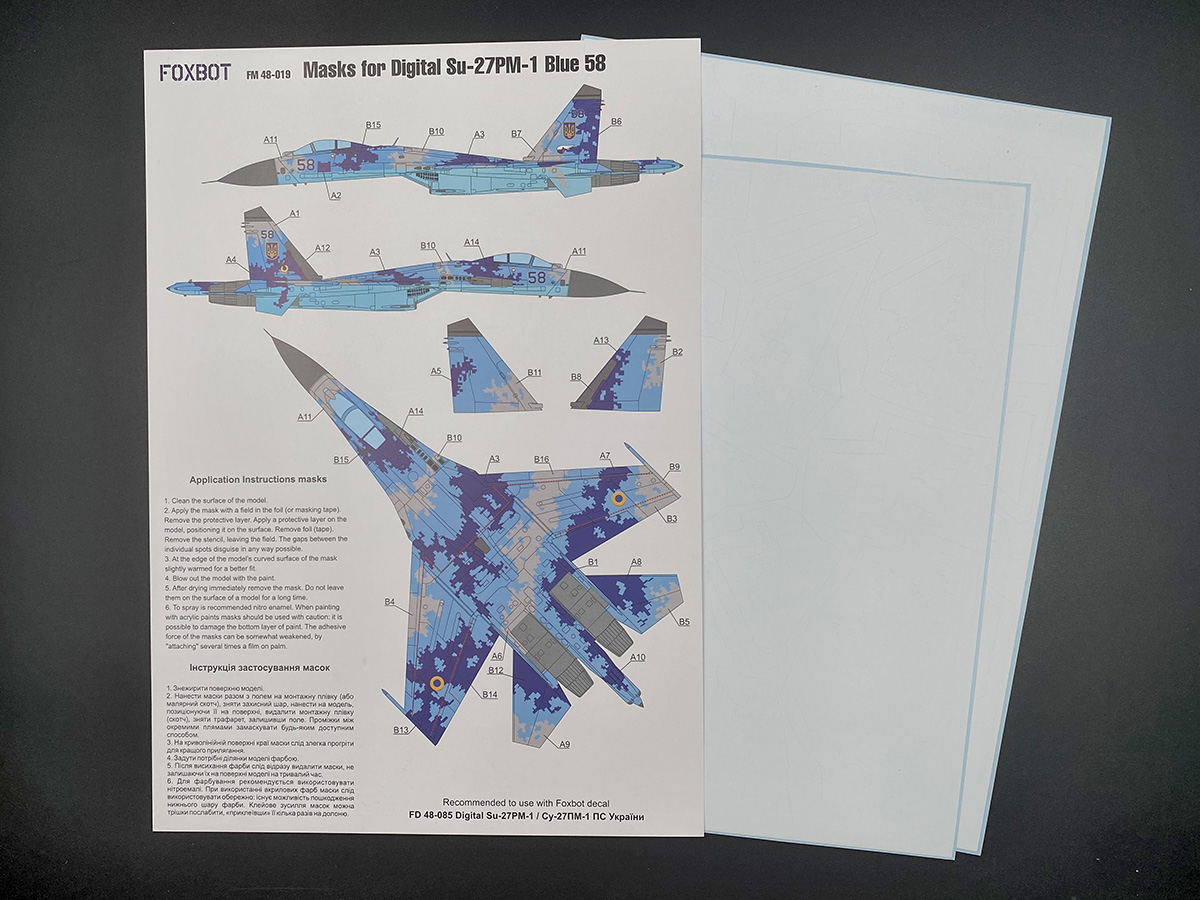 Foxbot Decals - 1/48 Digital Masks for Sukhoi Su-27P 'Blue 58', Ukranian Air Forces, digital camouflage Academy, Eduard, Great Wall Hobby, Hobby Boss, Kitty Hawk