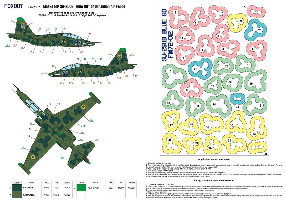 Foxbot Decals - 1/72 Masks for Sukhoi Su-25UB Blue 60