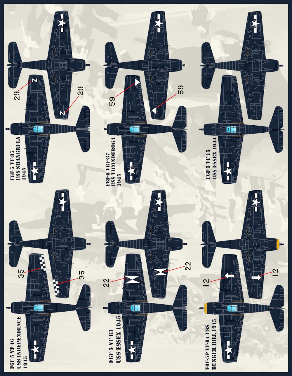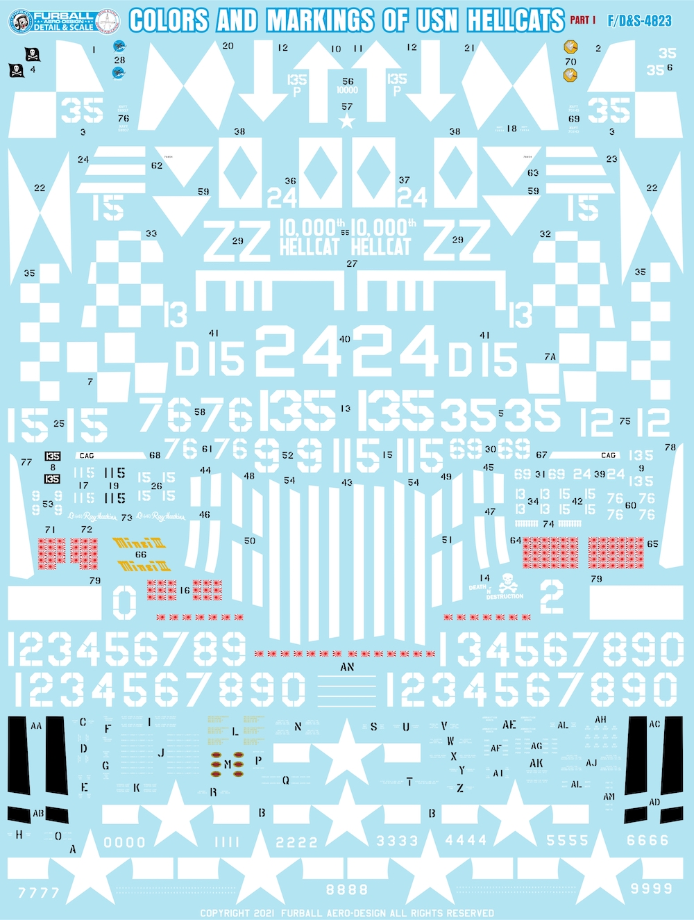 Furball Aero-Design - 1/48 Grumman Hellcat This set options for 12 F6F-5 Hellcats in the Glossy Sea Blue scheme: It is sized for the Eduard kits.