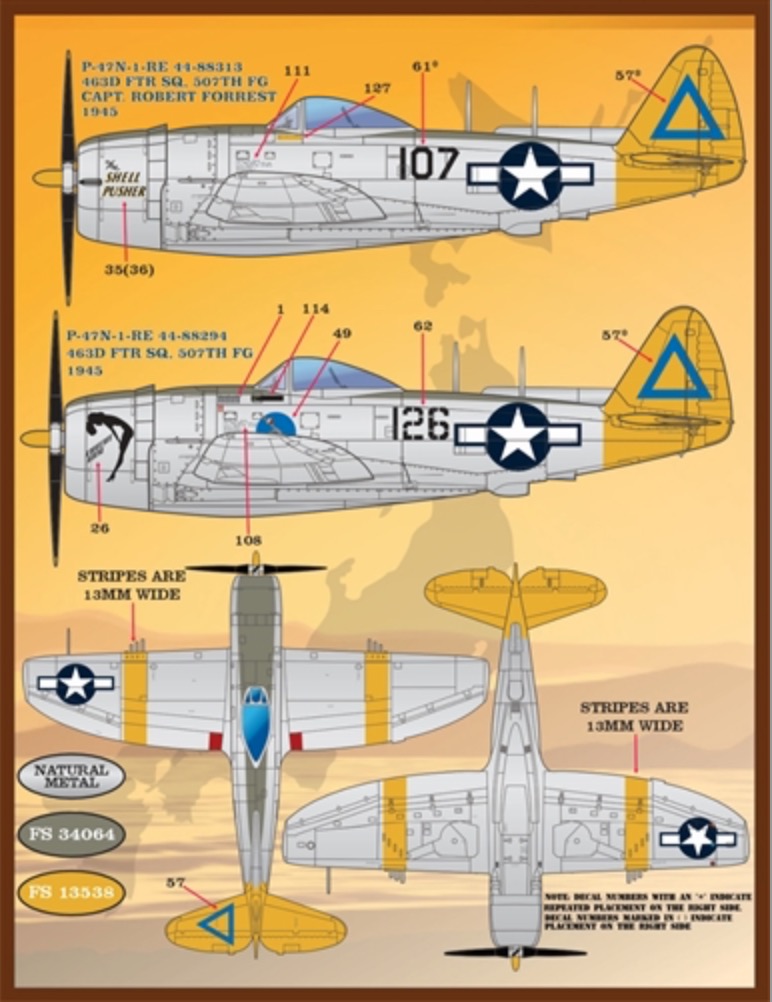 P-47N-1-RE 44-88313, 463D Ftr SQ, 507TH FG, CAPT. Robert FORREST, 1945 'The Shell Pusher'