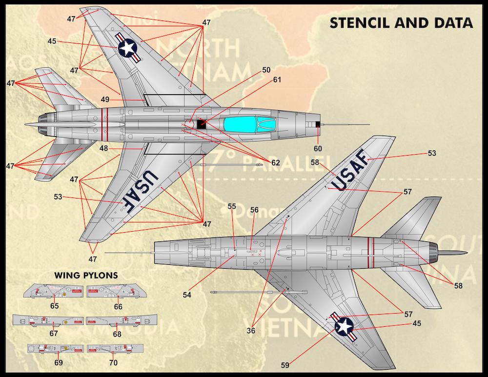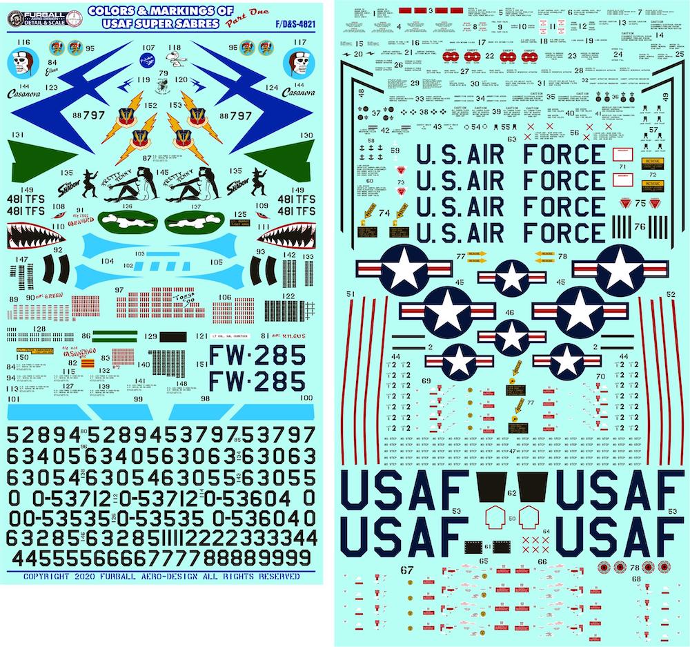 Furball Aero-Design - 1/72 Super Sabre USAF colors & markings. Options for 10 aircraft and enough stencil data is included to build 2 complete models. Here s a rundown of the jets covered: