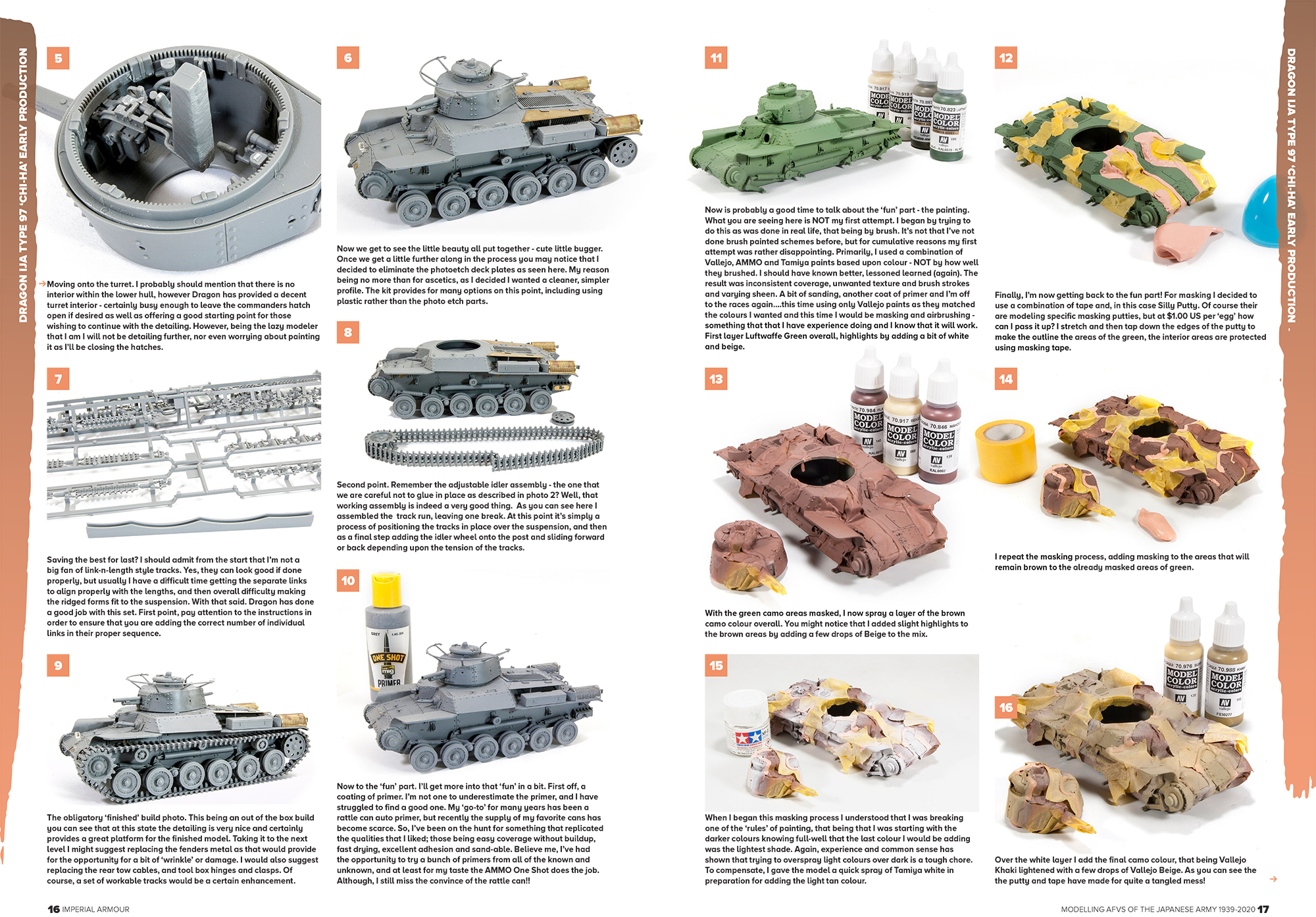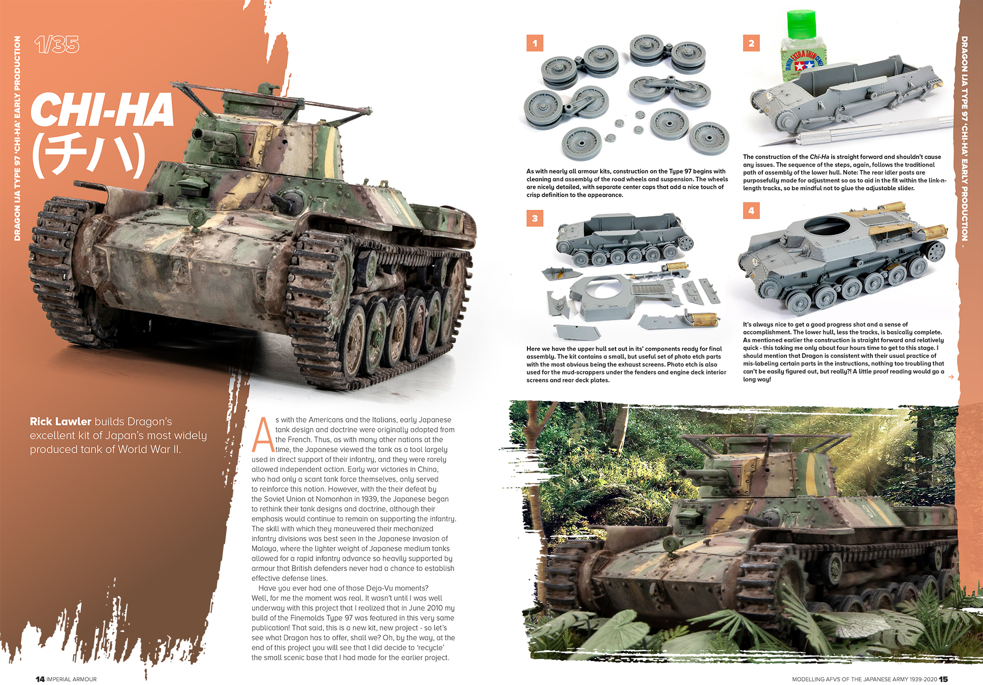 Guideline Publications - Imperial Armour: Modelling AFVs of the Japanese Army 1939-2020. 84 pages. Since the 1930s the armed forces of Japan have deployed a wide range of armoured fighting vehicles from diminutive tankettes to modern, state-of-the-art Main Battle Tanks. This new 84-page book from Guideline Publications and the team that bring you Military Modelcraft International presents a series of step-by-step guides and reference articles on Japanese AFVs from 1939 to the present day. Using from Dragon, Finemolds and Tamiya, some of the best modellers from the Mmi stable go through construction, detailing, and painting and weathering, while in-depth reference articles look at Japanese armour in World War II and today. As well as collecting and reimagining some of the best features on the topic from Mmi over the past decade and more, the book has new content that will both inspire and inform anyone wanting to tackle their own Japanese armour project.