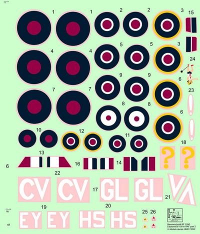 H-Model Decals - 1/72 Captured Messerschmitt Bf 109G-2 x 4 in RAF, Pt.2
