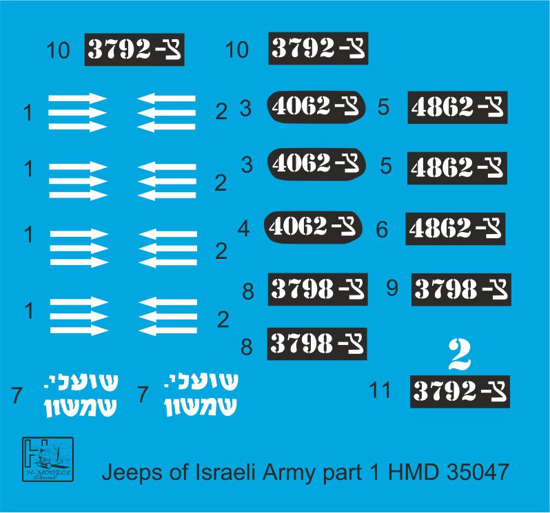 H-Model Decals - 1/35 Willys Jeep MB/U.S. Ford Gpw Israeli Army, War of Independence 1948