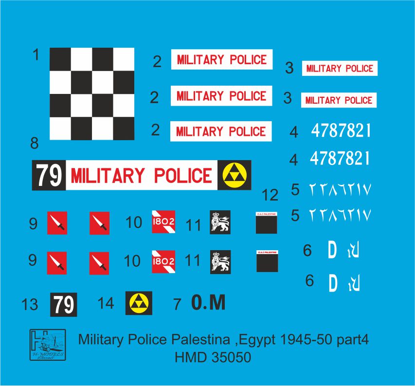 H-Model Decals - 1/35 Willys Jeep MB/U.S. Ford Gpw Jeeps Military Police, Pt.4 Palestine & Egypt 1945-50