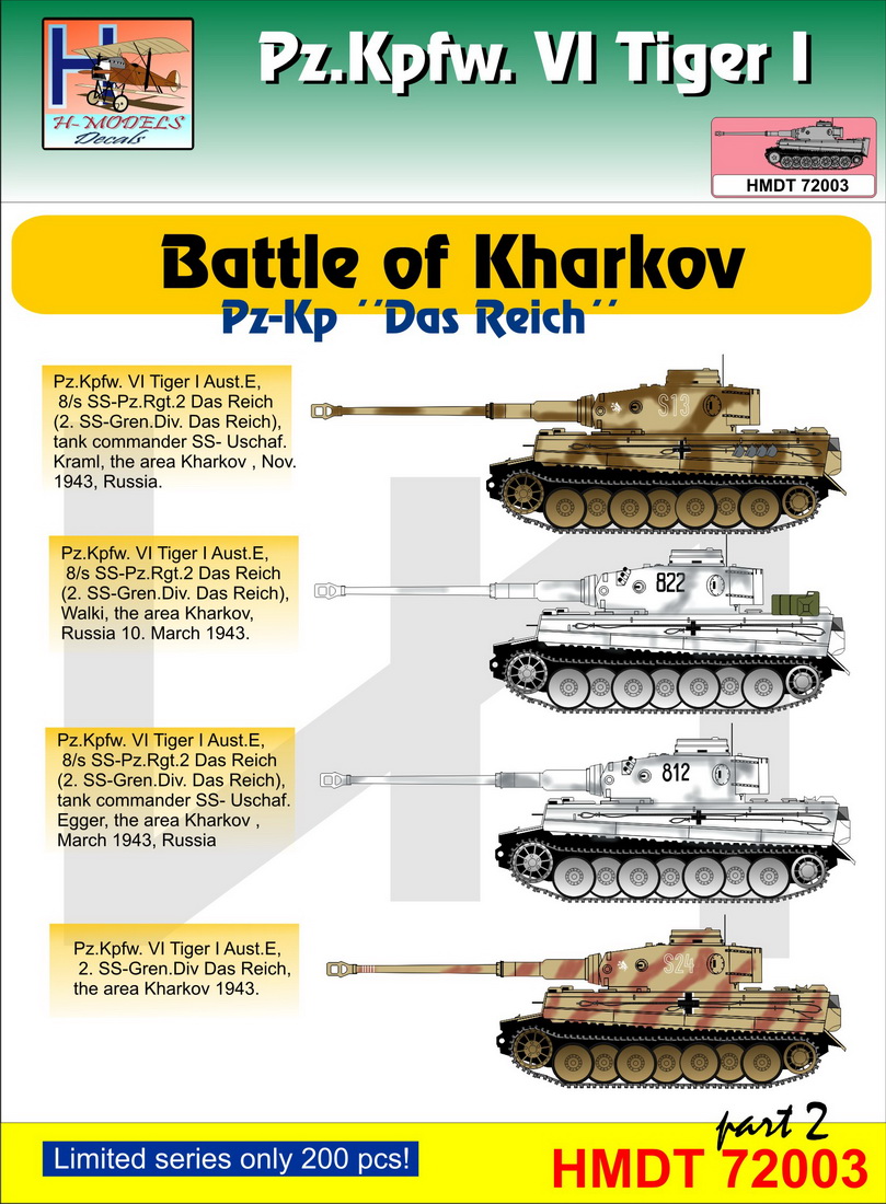 H-Model Decals - 1/72 Pz.Kpfw.VI Tiger I Battle of Kharkov (Pz.Kp. Das Reich), Pt.2