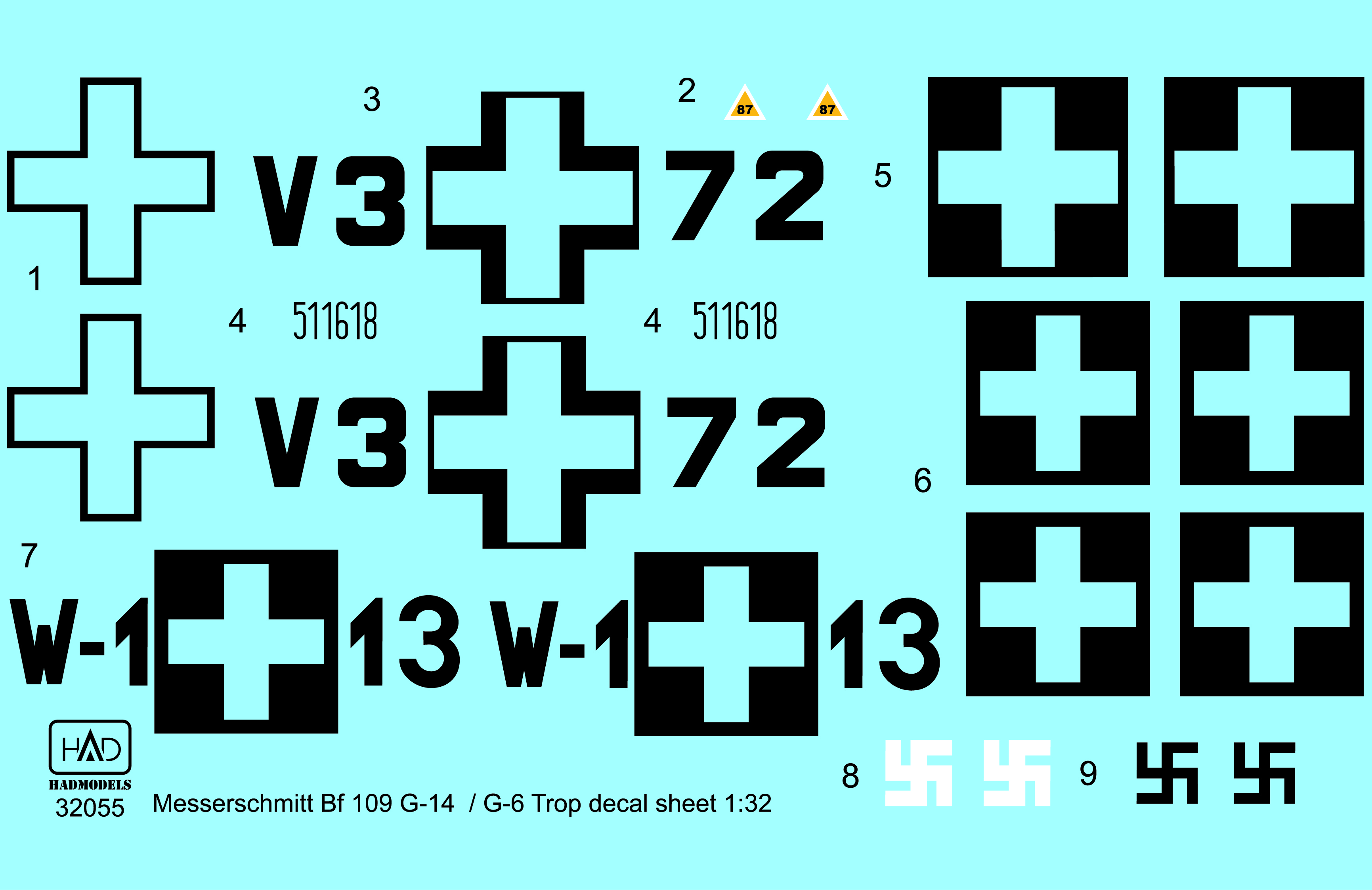 HAD - 1/32 Messerschmitt Bf-109G-6/Bf-10G-14 (V3+72 , W1+13)